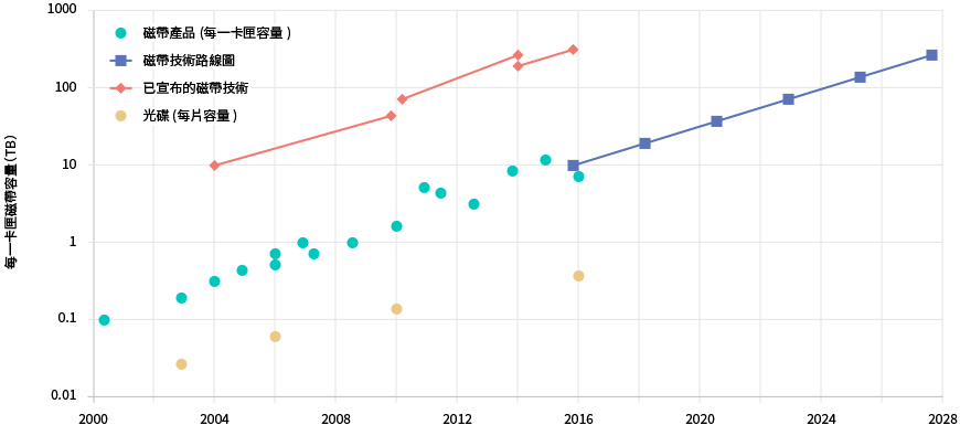 為了降低每一容量的單價,有必要繼續增加存儲容量。因此,磁帶的未來優勢得到了證明。